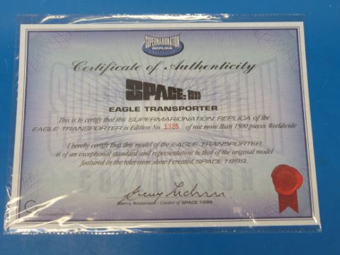A Supermarionation Space 1999 Eagle Transporter (Signature Edition), adult collector's display model with certificate, in original box.
