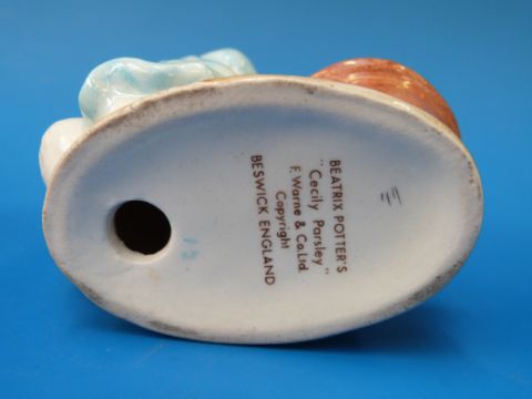 Four Beswick Beatrix Potter figures (Squirrel Nutkin, Benjamin Bunny, Mr Benjamin Bunny and Cecily Parsley) all with brown back stamps