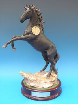 Beswick Cancara "The Black Horse" on plinth, made for the Beswick centenary 1884-1994, in original box