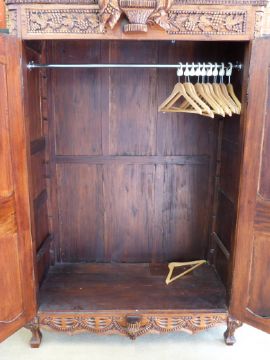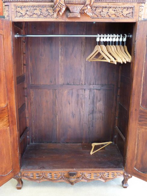 A heavily carved French walnut armoire (W137cm, D71cm, H211cm)