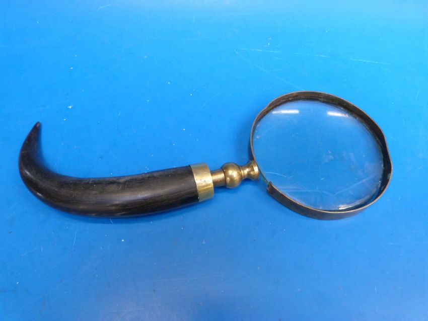 A large magnifier with horn handle