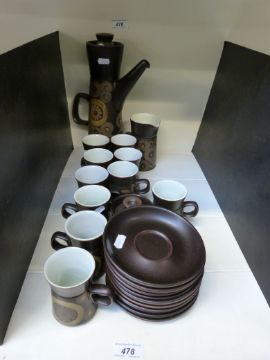 A Denby coffee set in the "Arabesque" pattern (ten mugs and saucers)
