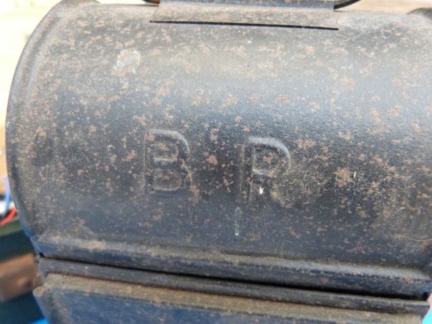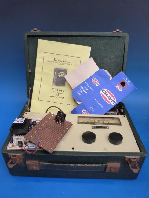 A set of scales marked 'The Acme', a B.R lamp and a radio set with battery kit