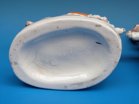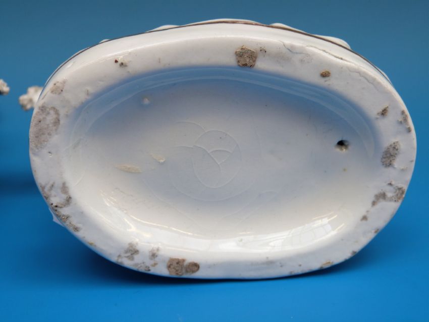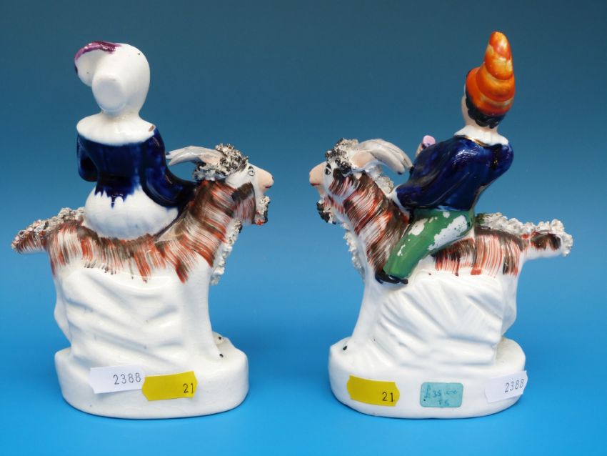 A pair of Staffordshire figures Punch and Judy riding goats (21cm high)