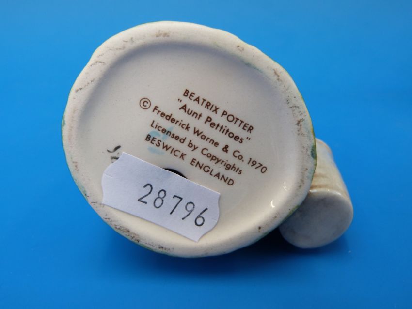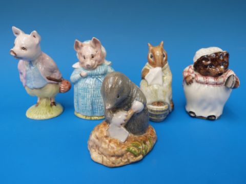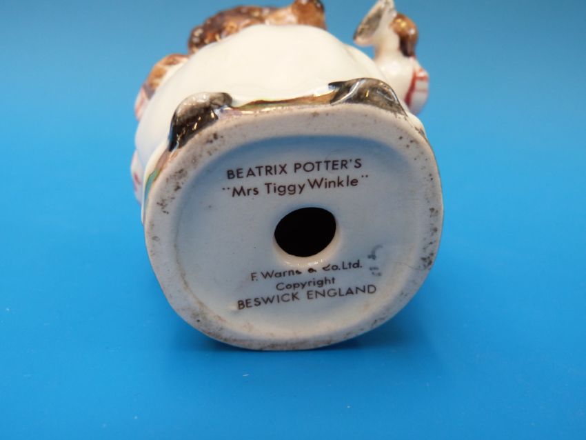 Five Beswick Beatrix Potter figures "Aunt Pettitoes", "Pigling Bland", "Diggory Diggory Delvet", "Mrs Tiggywinkle" and "Chippy Hackee", all with brown back stamps