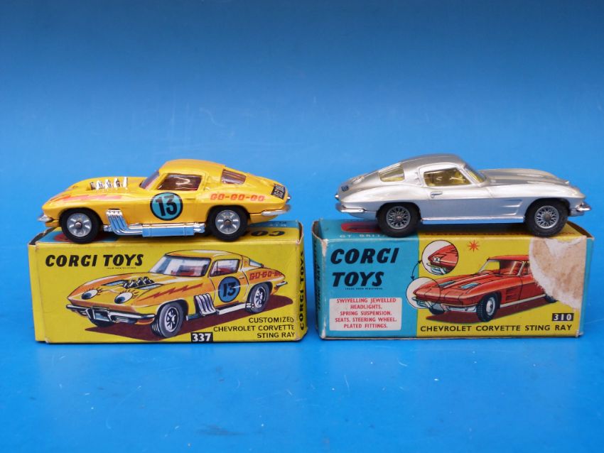 Two Corgi Chevrolet Corvette Sting Ray 310 and a Corgi customised Chevrolet Corvette Sting Ray 337