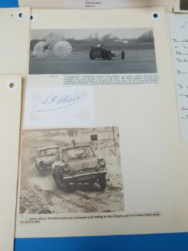 Nine various signed motor racing items to include Alan Rees, David Pyer, Jack Sears, Jim Russell, Gerald Ashmore, Jim Raggony, Tony Marsh etc