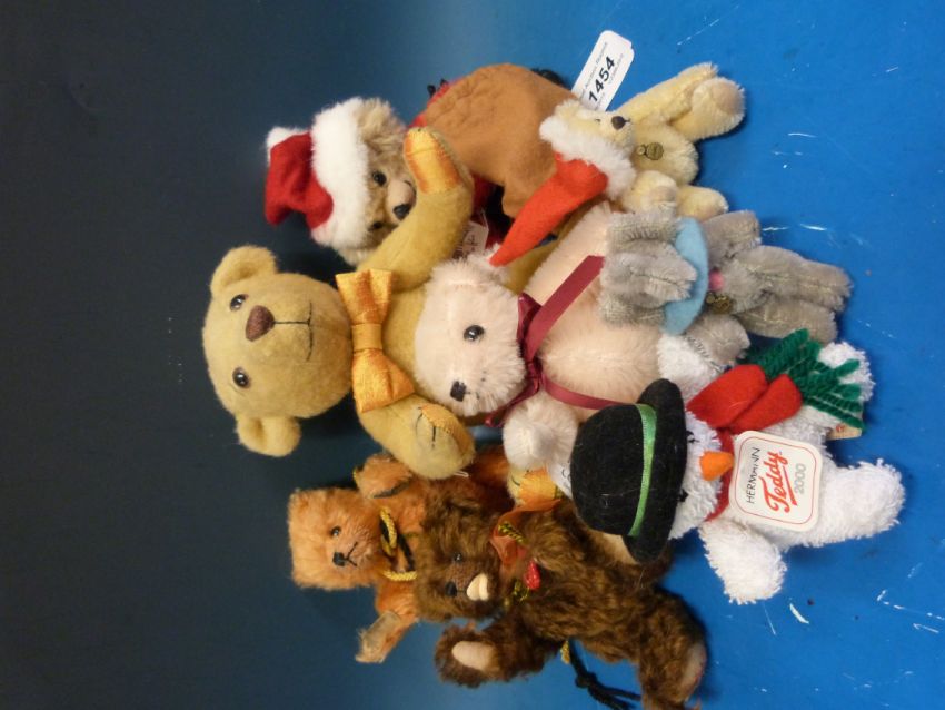 Nine miniature teddy bears by Hermann and Merrythought