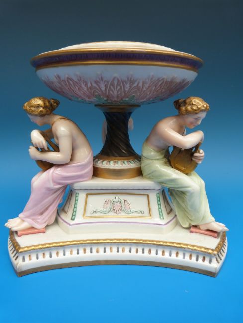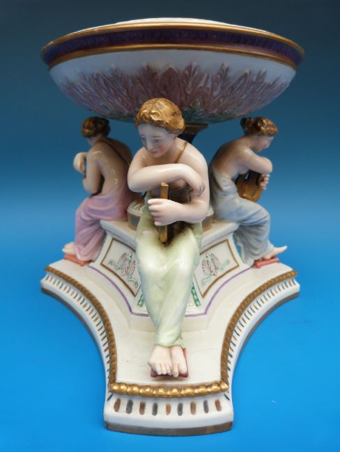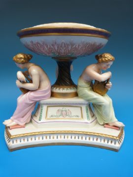 A large Royal Worcester pot pourri figural centrepiece with three classically dressed maidens playing lyres (19cm high)