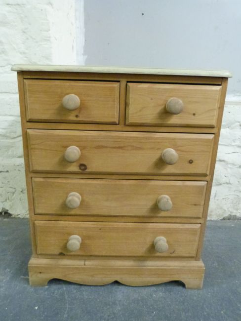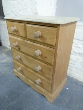 A small pine chest of two over three drawers (W65, D35, H78cm)