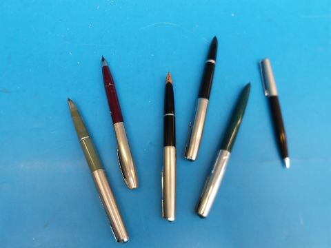 Six vintage pens (five Parker and a Sheaffer)