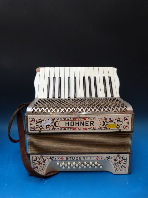 A 24 bass Hohner Student III piano accordion cased together with an 8 bass Alvari example