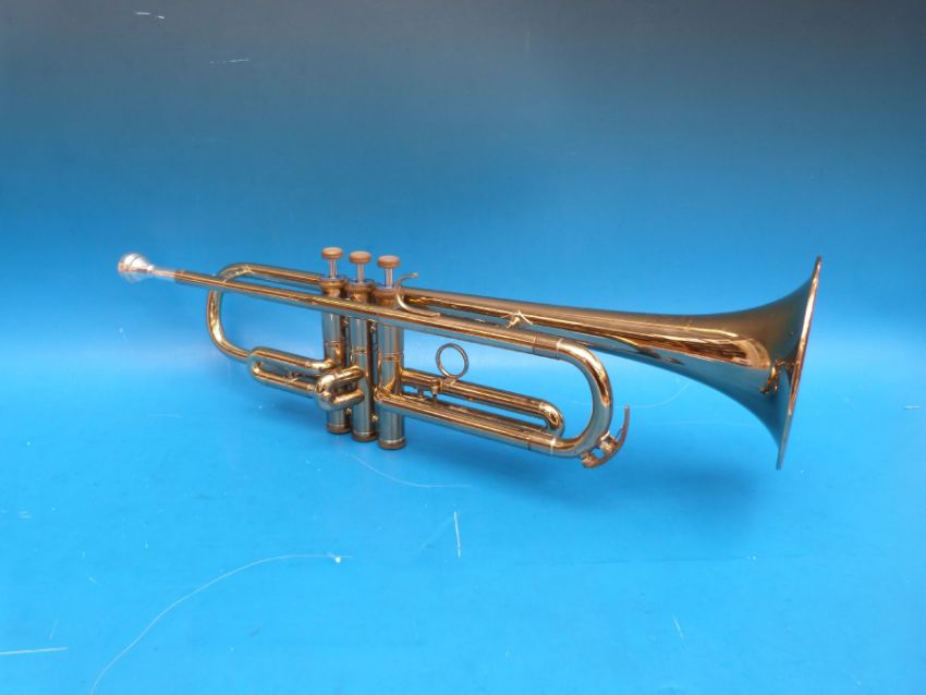 A cased Boosey & Hawkes trumpet, reg no 125824, with two spare mouthpieces