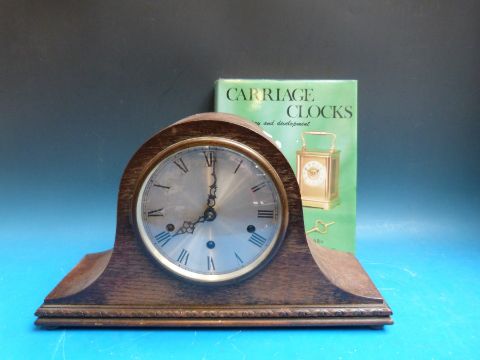 A three train Westminster chime 'Napoleon Hat' cased mantel clock with platform escapement, together with a book on carriage clocks by Charles Allix