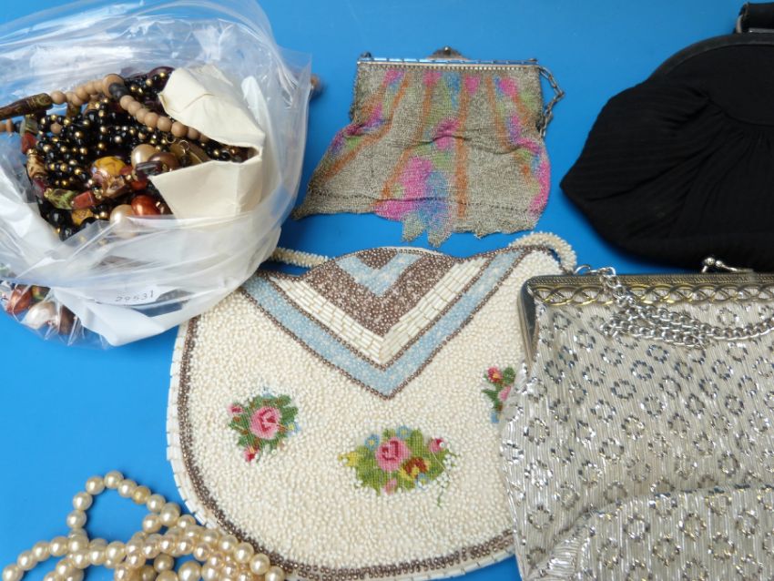 A Japanese lacquer box containing costume jewellery, bags, hat pins etc