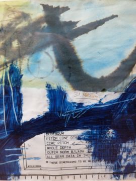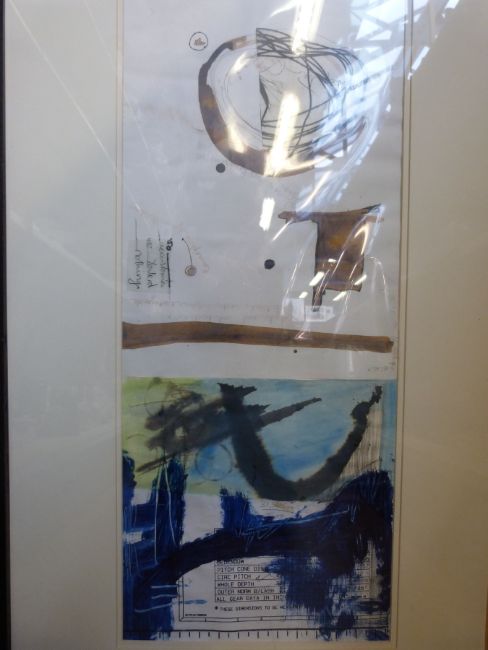 A framed mixed media 'Blue and Grey Circle', Gallery label verso, by Lorna Rose RCA (28.5cm x 69.5cm)