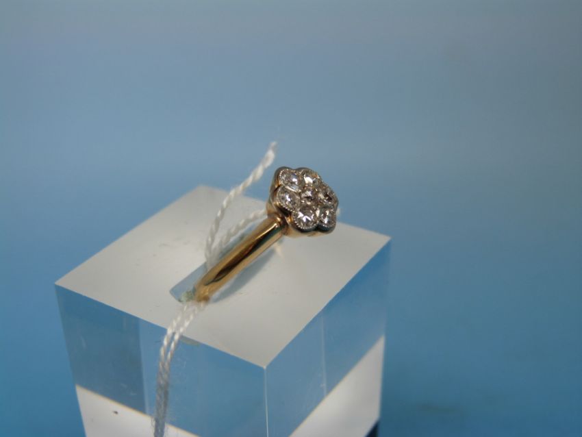 An 18ct gold ring set with seven diamonds in a flower cluster (size J)