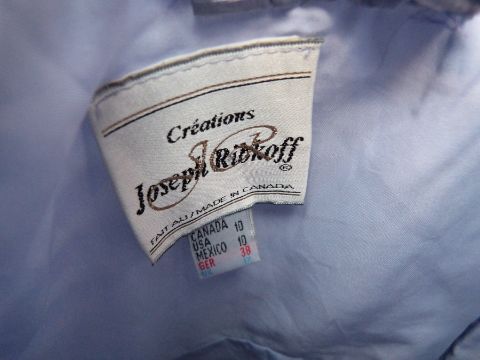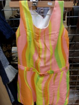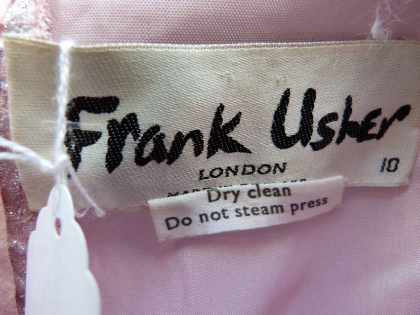 Five items of vintage ladies' wear, including Frank Usher evening dress, a 1960s mini-dress, Hardy Amies, Radley (size 12), Joseph Ribkoff (size 12).