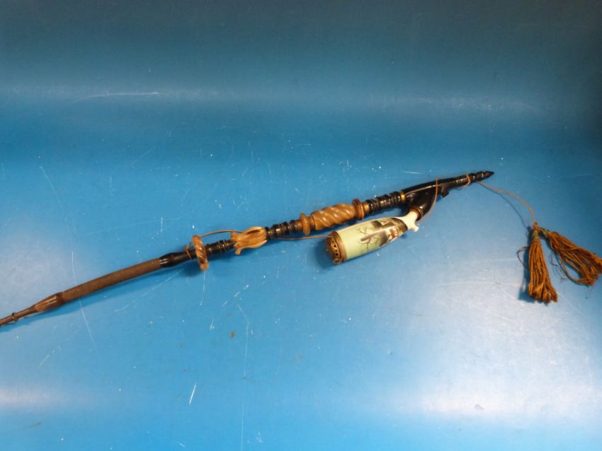 A continental carved horn and painted ceramic German pipe