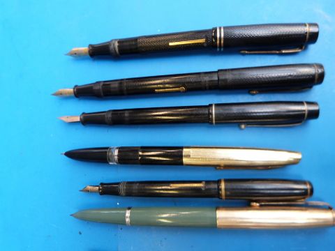A collection of 15 various fountain pens and propelling pencils to include Parker, De La Rue, Conway Stewart, Burnham, Stephens etc, one in original box.