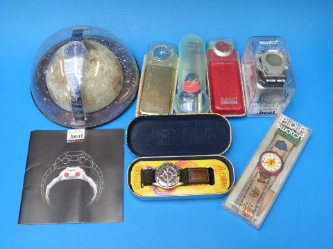 Six various Swatch wristwatches to include Millennium Dome edition, Beat, Irony etc, together with a Venom wristwatch (all in boxes)