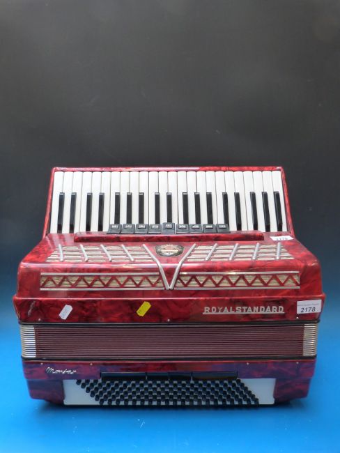 A Royal Standard 120 bass '4 voice' piano accordion , in red pearloid finish (with case)