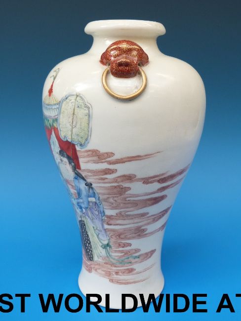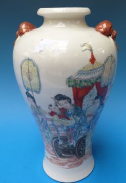 A 19th Chinese vase decorated with courtesans with Qianlong mark to base (29cm tall)