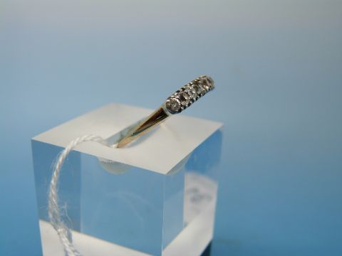 A yellow metal ring set with eight diamonds in a platinum setting (size R)