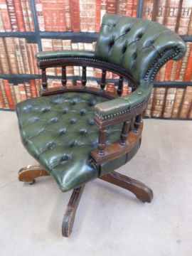A leather upholstered Captain's chair
