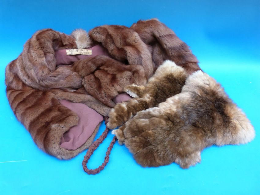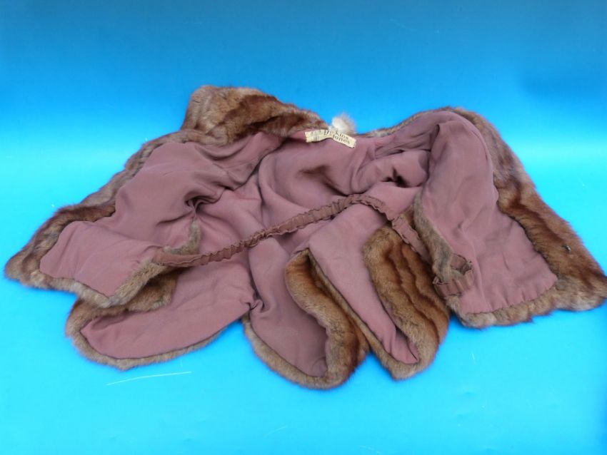 A ladies fur shrug and fur gloves