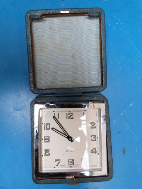 A 1920s square travelling timepiece with Swiss eight day movement, Arabic numerals and luminous hands