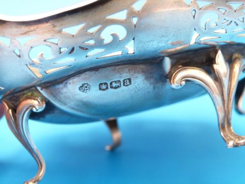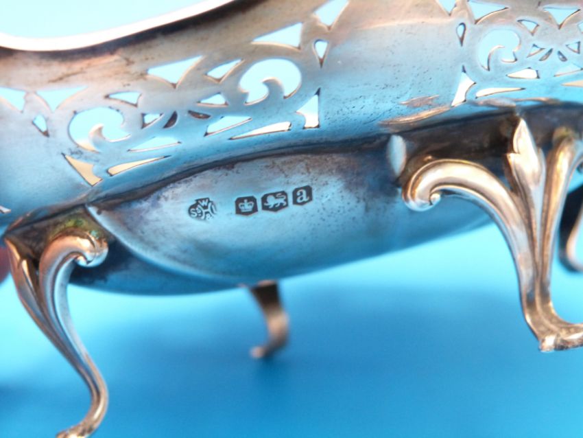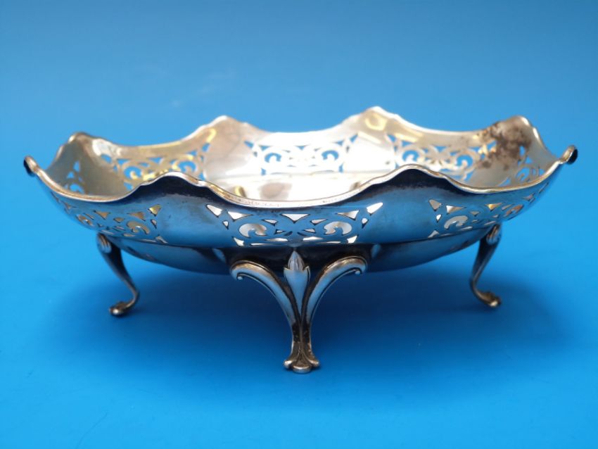 A pierced silver bon bon dish raised on four feet, Sheffield 1918, maker W. Hutton & Sons Ltd (90g, length 14cm)
