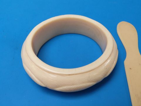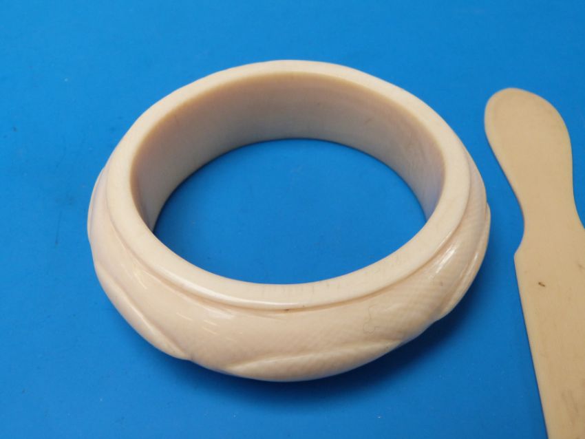 An ivory bangle, bakelite page turner etc