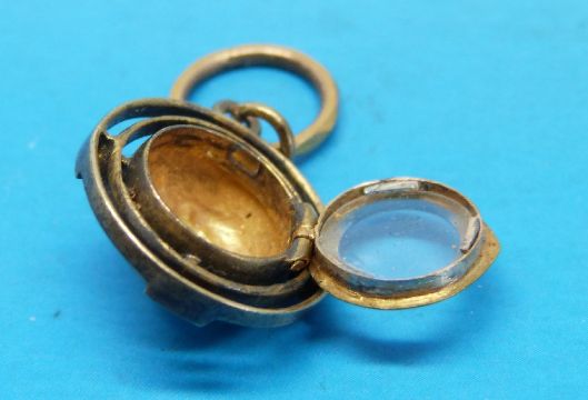 A Victorian gold pendant set with an emerald to the centre and diamonds to the outer edge with compartment to the back
