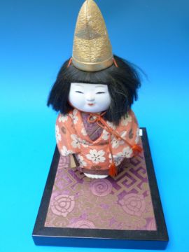 A Japanese doll on plinth possibly a present from Prince Chichibu