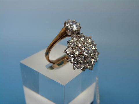 A 9ct gold cluster ring (size L) together with an 9ct gold ring set with a clear stone (size N)