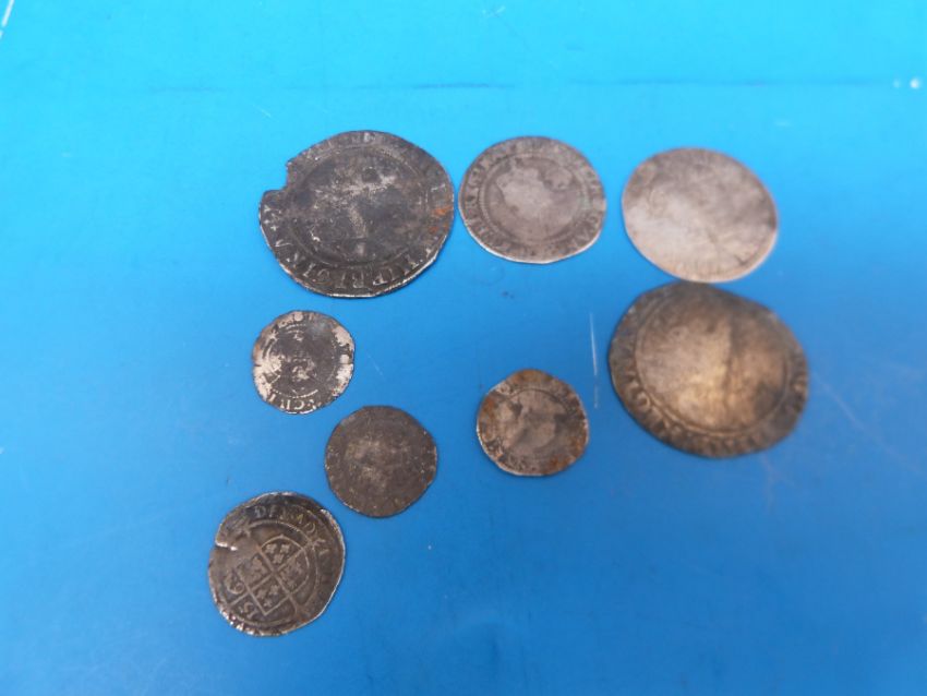 Eight Elizabeth I hammered coins comprising shillings, two sixpences, a half groat, a penny and two halfpennies