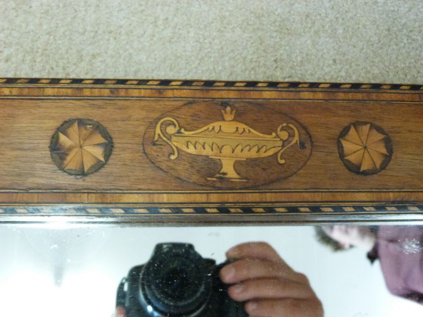 A 19thC inlaid mirror (48 x 82.5cm overall) together with two other mirrors