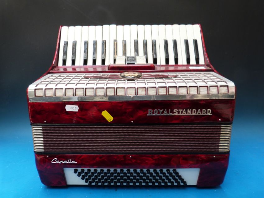 A 1980 Royal Standard Capella 80 bass piano accordion in red pearloid finish, three treble couplers (cased)