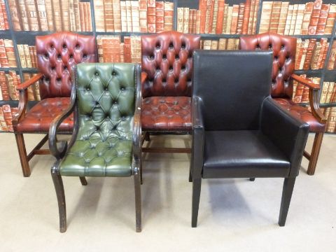 Four leather button back chairs and one other