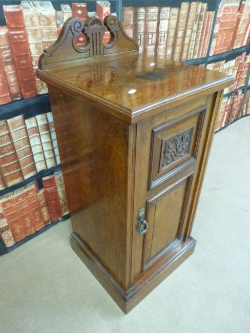 A C19th carved walnut pot cupboard (W39.5 x D40 x H91cm)