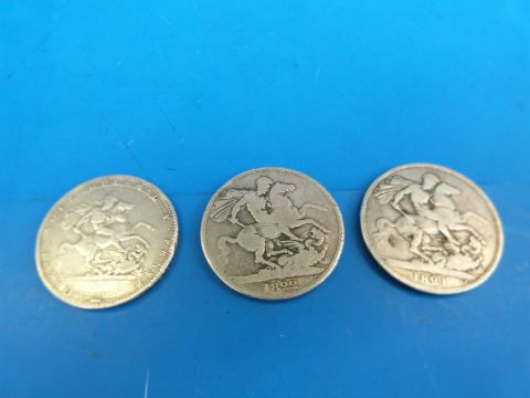 A George III 1819 crown together with two George IV examples for 1821 and 1822