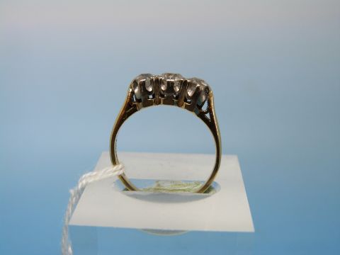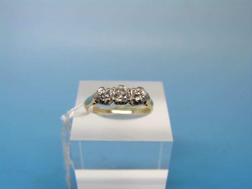 An 18ct gold ring set with three diamonds, the centre diamond measuring approx 0.4ct, the others approx 0.25ct (total weight approx 0.9ct, size O)