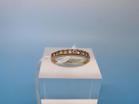 A yellow metal ring marked .375 set with clear stones (size K)