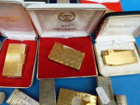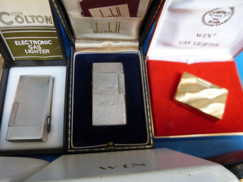 A collection of vintage lighters including 14 various Dunhill examples, two being cased
