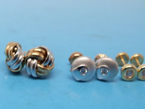 A pair 9ct gold bi-coloured knot earrings and two other pairs