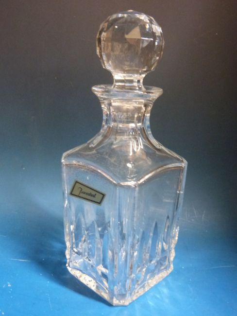 A Baccarat decanter, Dartington Crystal bell, vases etc