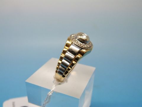 An 18ct gold ring set with a round brilliant cut diamond surrounded by smaller diamonds (size T, total carat weight 0.5ct)