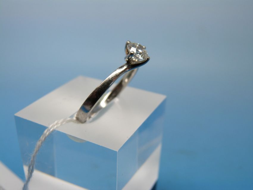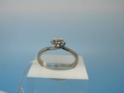 A platinum ring set with a round brilliant cut solitaire diamond of approximately 0.5ct (size O)