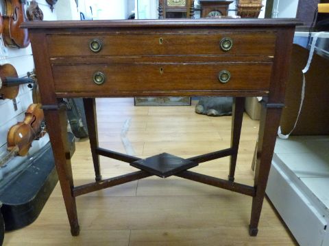 A mahogany cutlery canteen with two fitted drawers, containing a selection of plated cutlery